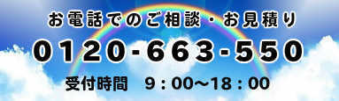 フリーダイヤル 0120-663-550 携帯からもご利用いただけます。 メールフォームは右フォームから。