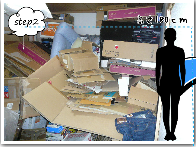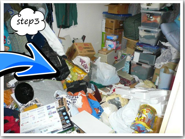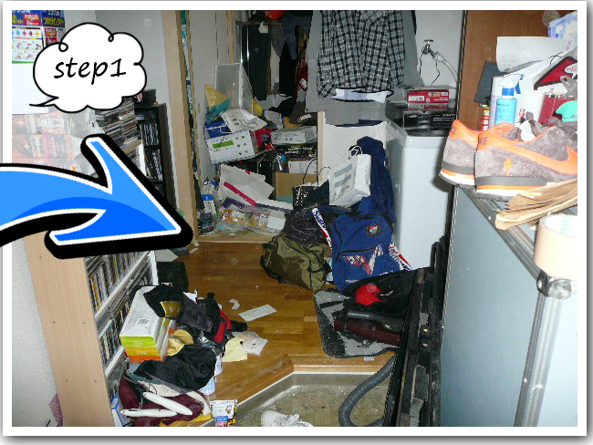 部屋の中のモノや不用品が天井まで届きそうなところまできて、これは自力でのかたづけは無理と判断されご相談いただきました。それでは、簡単4ステップでさっそく見ていきましょう。